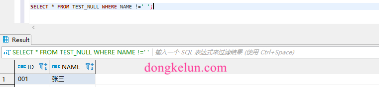 1 | SELECT * FROM TEST_NULL WHERE NAME !='' |